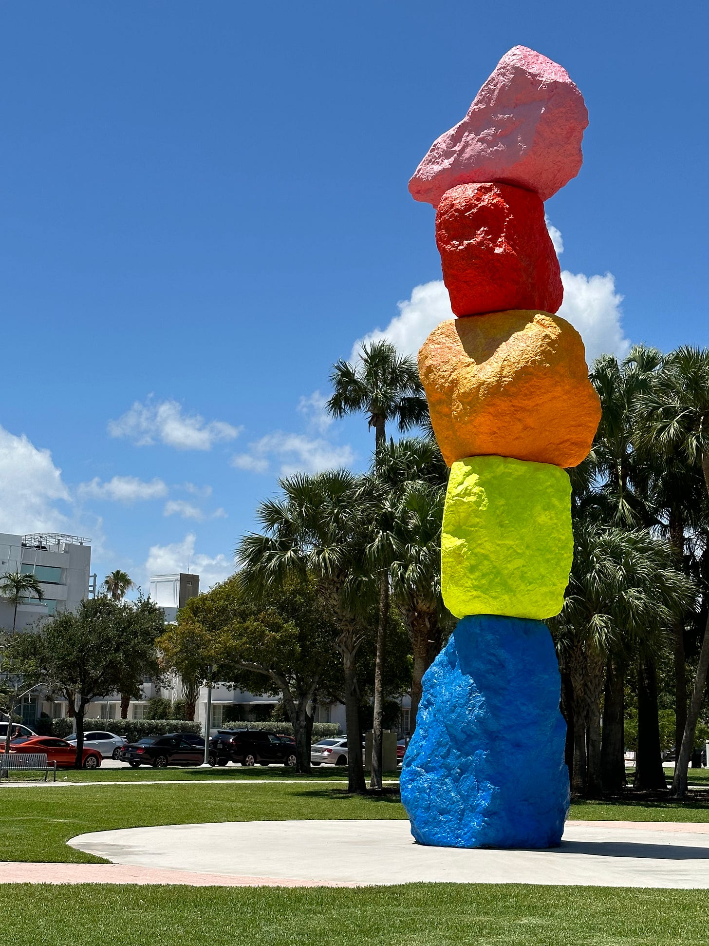 On my way, in the blazing sun, I passed by the Bass Museum and admired the colorful sculpture by the Swiss artist Ugo Rondinone. Miami Mountain (2016).